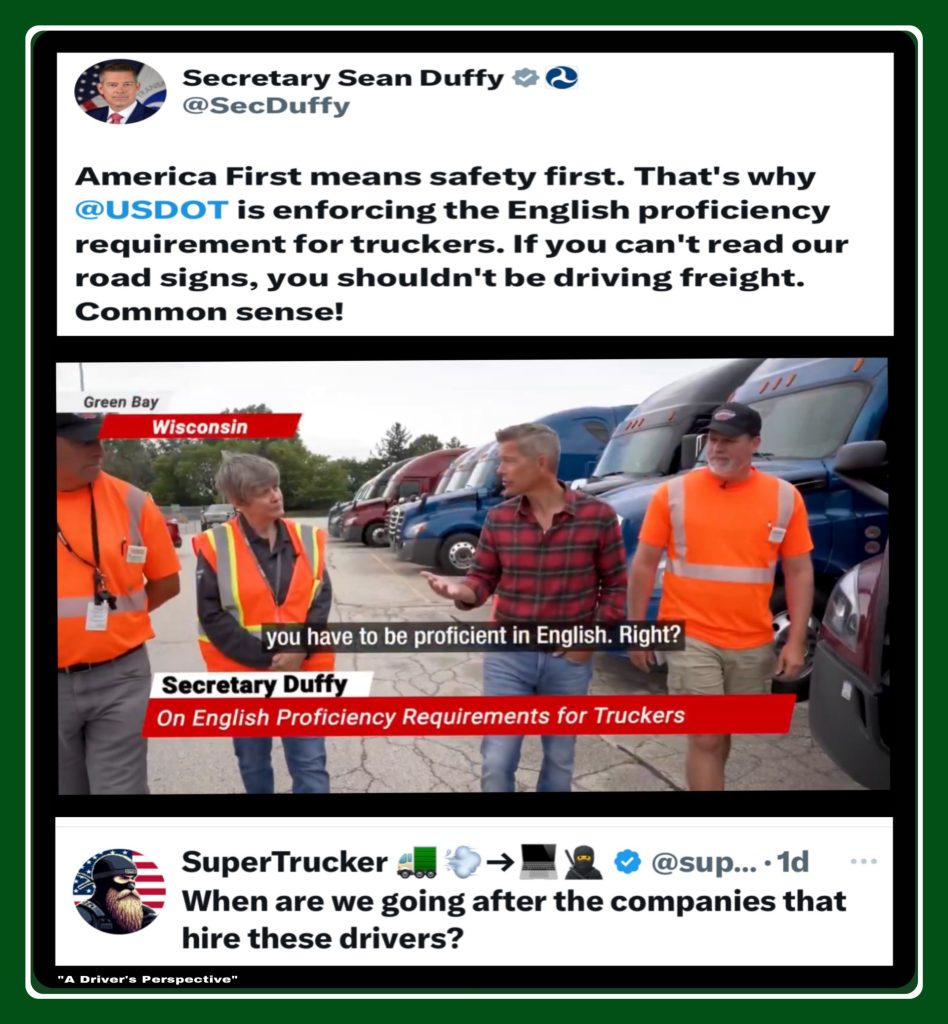 THE REAL PROBLEM Corporations That Exploit the System Enforcing English Isn’t Enough - It’s Time to Hold the Companies Accountable When Secretary Sean Duffy took to social media this week to announce that the U.S. Department of Transportation is now enforcing the English proficiency requirement for truck drivers, many of us in the industry had [...]